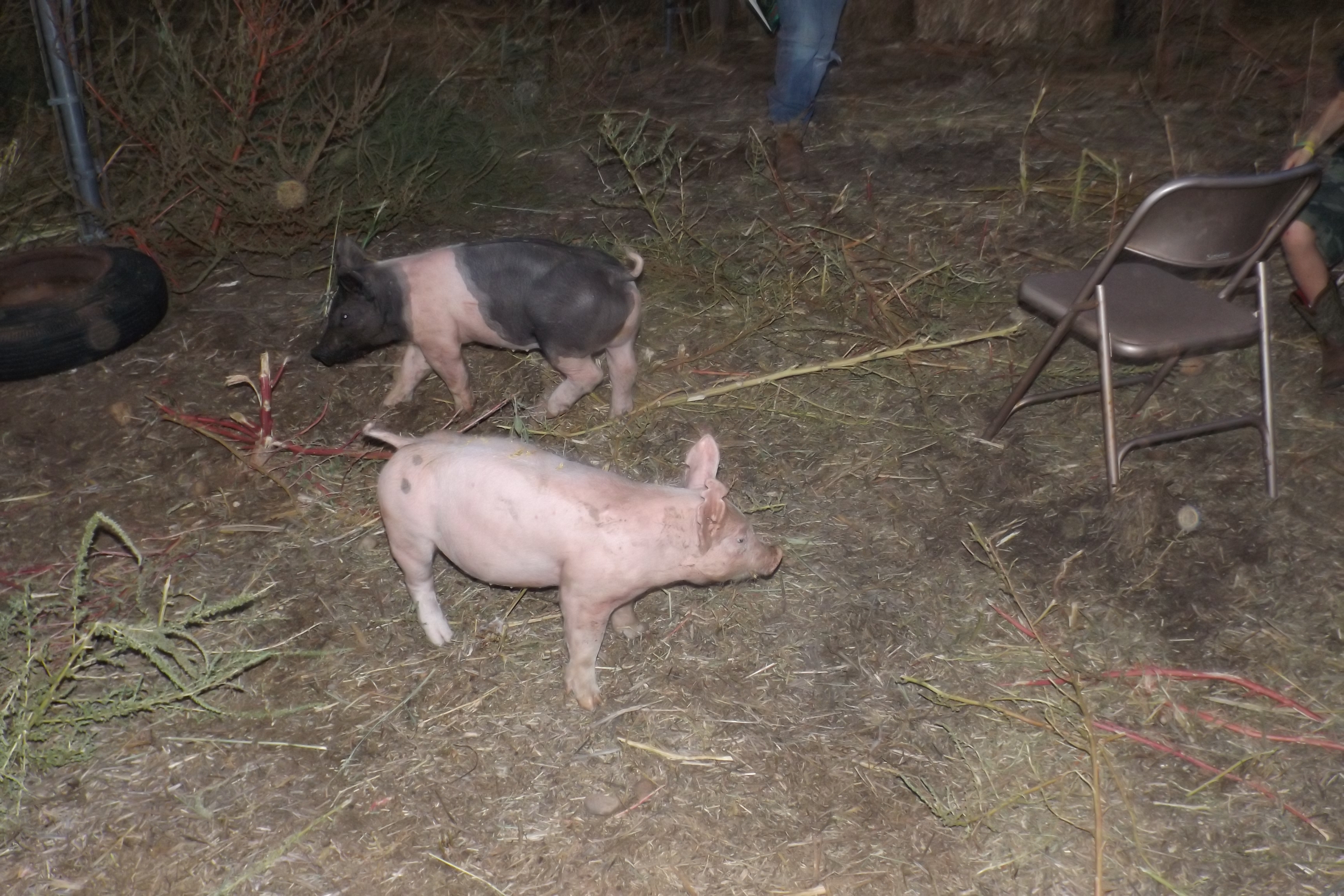 In case you’re wondering, pigs are hard to catch. They’re even harder to hold onto. But at the end of the day, we won! Now we can work hard to get the pigs ready for the show. Donald and Shadrach need to train the pigs to be driven. Let the work begin!